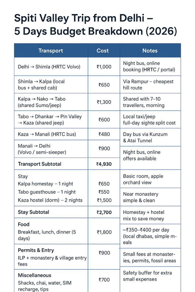 This 2026 Spiti Valley budget travel guide from Delhi includes: